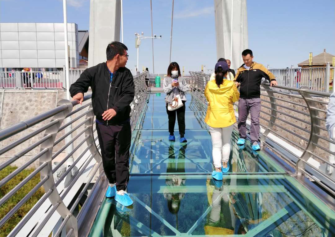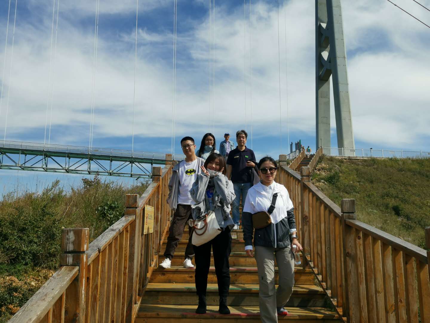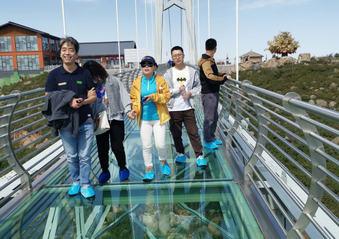 14日下午游覽車載著一行人行駛在山間的小路上,清風(fēng)徐徐,好不愜意,接著迎來了全長639米的玻璃棧道挑戰(zhàn),驚心動(dòng)魄,姿態(tài)百出。