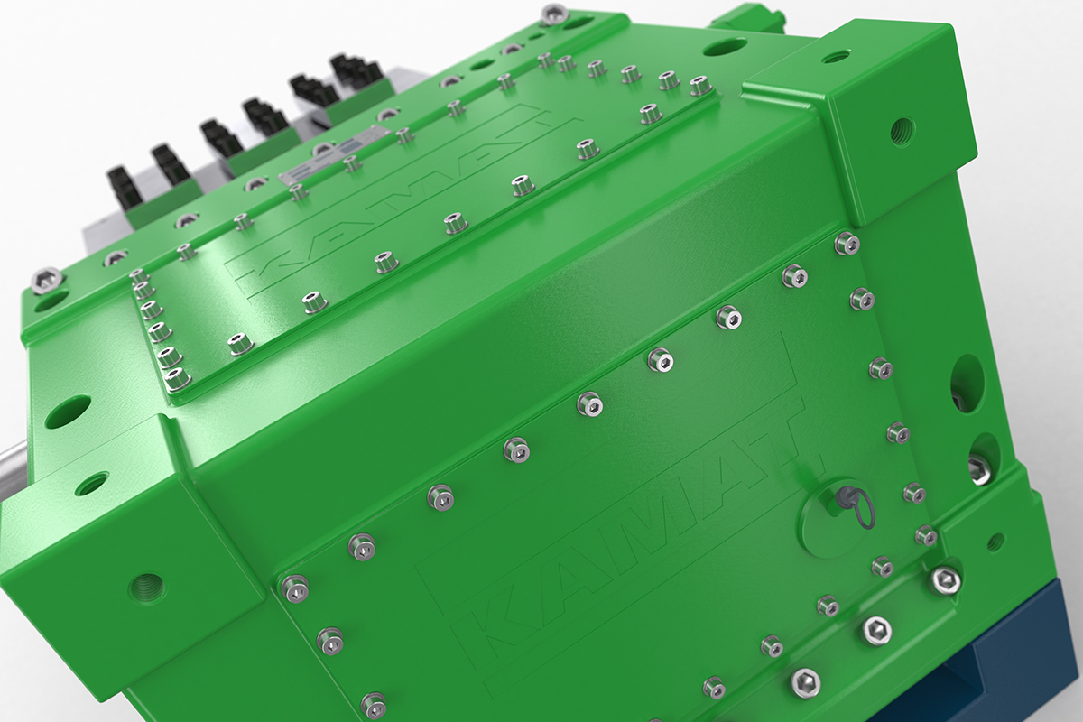 K35000高壓泵的驅(qū)動(dòng)功率為350 kW,非常適合噴射和液壓應(yīng)用。 例如,它經(jīng)常與大型移動(dòng)式噴射系統(tǒng)一起使用,已在化工行業(yè)服務(wù)多年,并在采礦行業(yè)滿(mǎn)足流量從400至600 l升/ 分鐘的需求。 在這種情況下,帶有強(qiáng)制潤(rùn)滑齒輪和油冷卻器的K35000可以滿(mǎn)足24/7全天候運(yùn)行的要求。 K35000高壓泵采用經(jīng)典的KAMAT模塊化組件系統(tǒng)構(gòu)建,因此可以靈活地適應(yīng)工作壓力和介質(zhì)等要求。 因此,它也經(jīng)常用于過(guò)程處理領(lǐng)域。