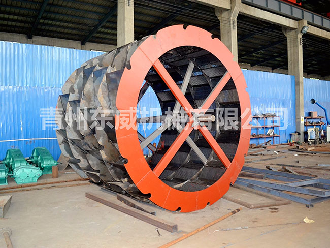 海沙淡化沖洗機的工作原理如同一臺滾筒式洗衣機,滾筒內設置螺旋葉片和抓斗,確保進料、出料自動完成;滾筒旋轉攪拌,供水系統(tǒng)連續(xù)不斷注入淡水,對海砂進行反復沖洗,使含鹽水不斷地從洗沙機溢水口溢出,完成去鹽工作。