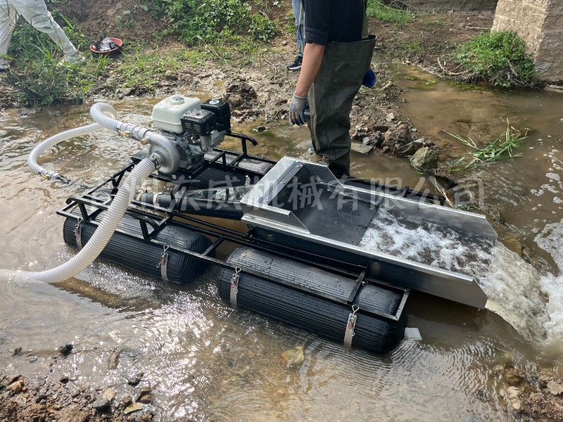 該設(shè)備抽沙系統(tǒng)采用新型結(jié)構(gòu),原料抽取過程中物料不流經(jīng)泵組,不用考慮泵和葉輪的磨損;沙金重選裝置為我公司專門研發(fā)的橡膠選金墊,沙金提取效率高,可對毛細(xì)金、片狀金進(jìn)行回收;適用于中小型礦場、河道、小溪淘金、探礦作業(yè);