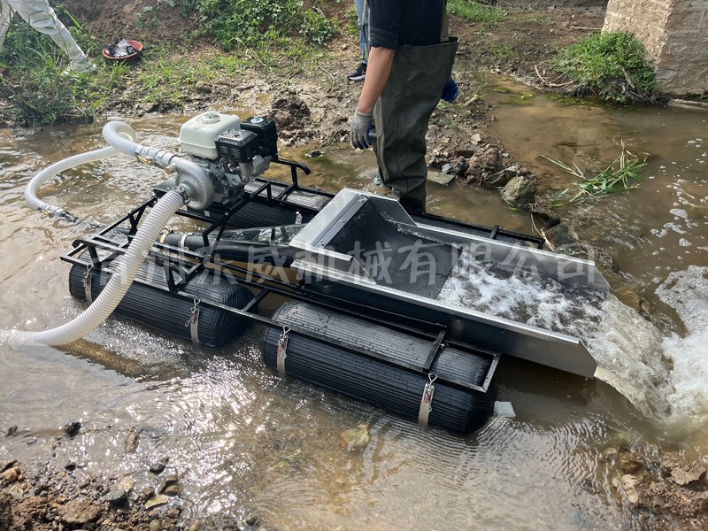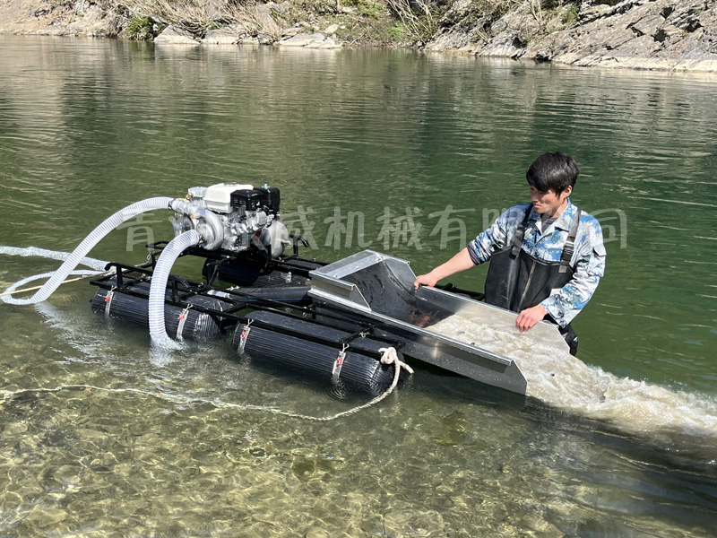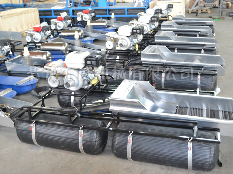該設(shè)備抽沙系統(tǒng)采用新型結(jié)構(gòu),原料抽取過程中物料不流經(jīng)泵組,不用考慮泵和葉輪的磨損;沙金重選裝置為我公司專門研發(fā)的橡膠選金墊,沙金提取效率高,可對毛細(xì)金、片狀金進(jìn)行回收;適用于中小型礦場、河道、小溪淘金、探礦作業(yè);